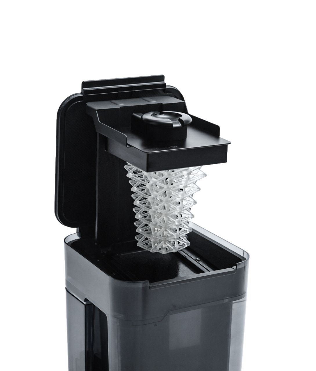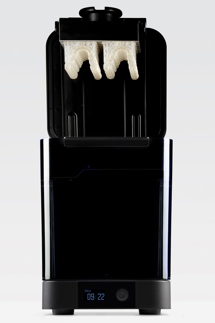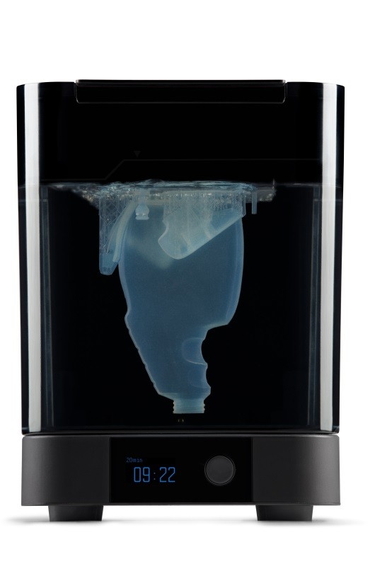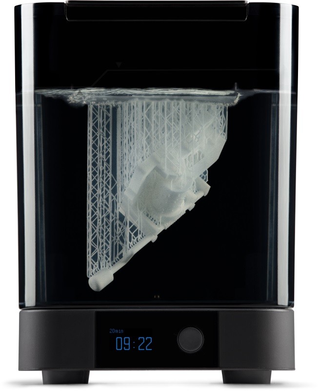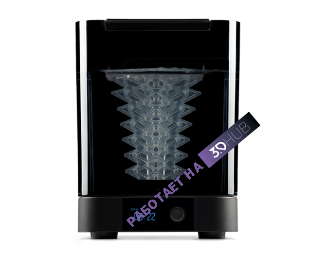 Последовательная очистка: крыльчатка, вращаясь равномерно, перемешивает изопропиловый спирт, обеспечивая ему доступ к каждому скрытому уголку изделия. Всё максимально оптимизированно: Вы можете переместить модель как прямо из принтера, вместе с печатной платформой, так и отдельно, поместив модель в специальный контейнер.